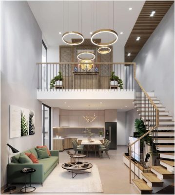 Thường độ cao của gác lửng sẽ trong khoảng 2 – 2,5m trải dài 2/3 chiều dài ngôi nhà. Với nhà rộng thì tầng lửng chiếm 1/3 đến 1/2 tầng trệt. Do chiều cao này sẽ giúp nhà thêm rộng rãi thông thoáng.